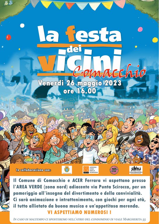 Venerdì 26 maggio 2023 ore 16.00 Il Comune di Comacchio e ACER Ferrara vi aspettano presso l’AREA VERDE (zona nord) adiacente via Punta Scirocca, p…