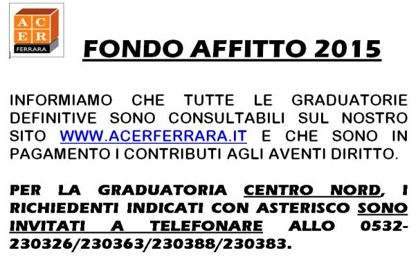 Leggi la NOTA INFORMATIVA relativa al fondo affitto 2015.